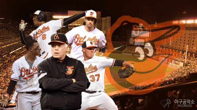 93패 팀을 1년만에 93승(2012년)팀으로 만든 벅 쇼월터 사단은 5년 연속 루징 시즌을 면했고 세 번의 짝수 해 동안 가을야구에 진출했다. 그러나 쇼월터 감독은 본인의 지향점과 맞지 않은 로스터 때문에 한 해 평균 130가지가 넘는 라인업을 선보일 수밖에 없었고 매 경기는 실험의 연속이었다. 얇은 뎁스 때문에 내야수가 줄줄이 부상을 당했을 땐 외야수였던 스티브 피어스가 야구 인생 처음으로 2루수를 뛰기도 하였다. 3루수 출신이었던 1루수 크리스 데이비스가 우익수 아르바이트를 한 달간 뛴 적도 있다. 심지어 올 시즌은 1루수 유망주였던 트레이 맨시니가 조이 리카드와 김현수를 밀어내면서 결국 좌익수 자리를 꿰차고야 말았다.