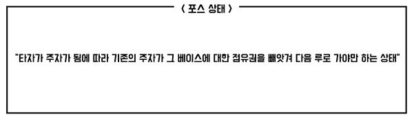 그렇다면 포스 상태란 무엇인가. 위에서 소개한 포스 플레이에 대한 정의를 활용하면 아래와 같이 쓸 수 있다.