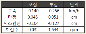 3. 투수 각각에 대해 주자가 없을 때의 평균에서 있을 때의 평균을 뺀다. 그렇게 하면 구속, 타점, 익스텐션, 회전수에 대해 각각 531개의 차이값이 나오게 된다.