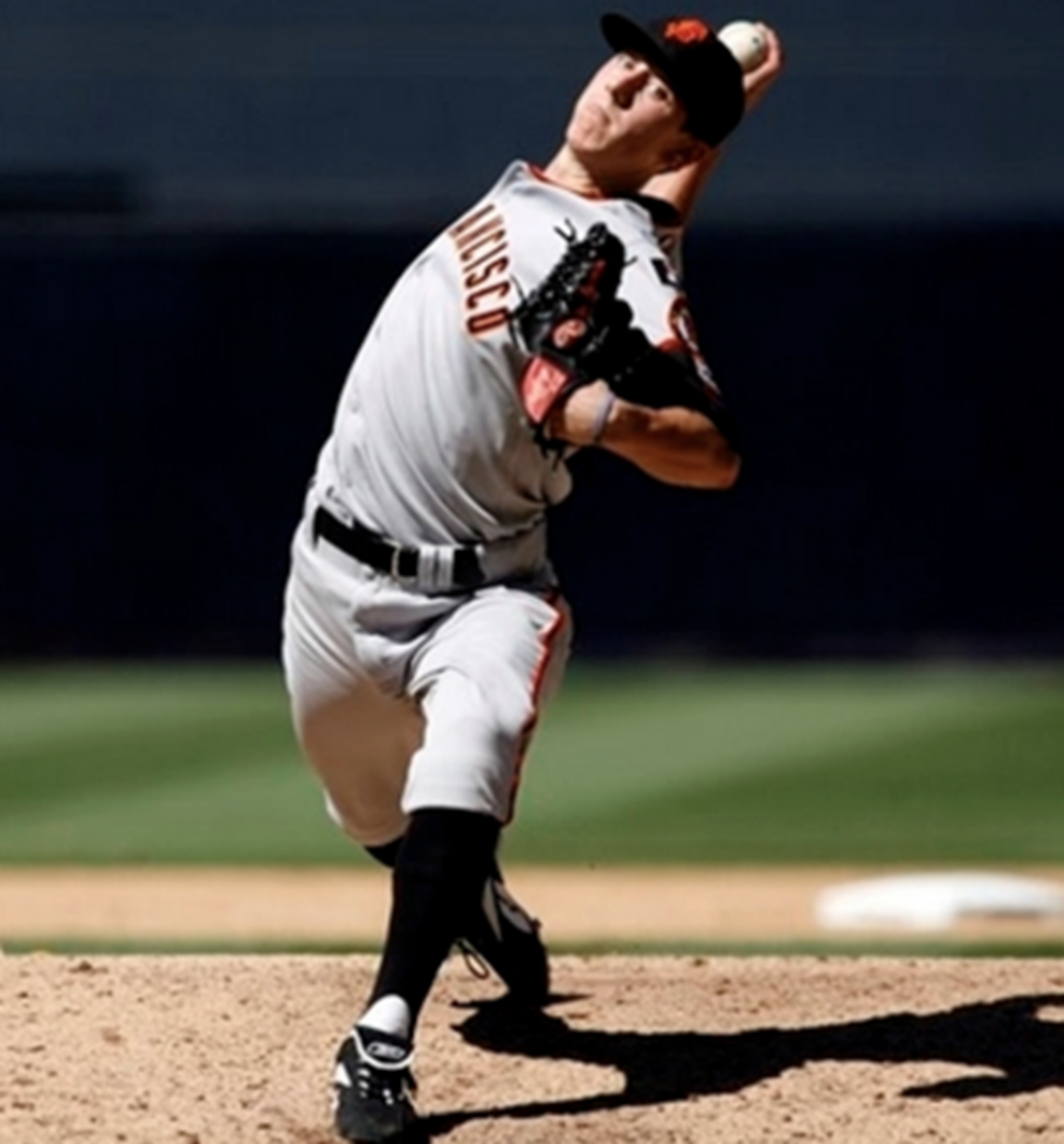 < 수많은 오버핸드 투수들의 선망의 대상이었던 팀 린스컴의 투구 모습. 착지 시 허리에 큰 범위의 신전이 일어나 있는 모습을 확인할 수 있다. >