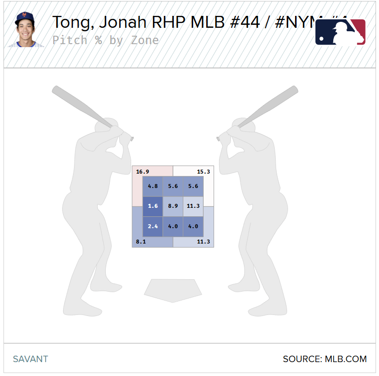 조나 통에게도 이러한 모습이 나타난다. 올해 조나 통의 팔 각도는 약 64도로 메이저리그 선발 투수들 중 가장 높은 팔 각도를 나타내고 있다. 그의 패스트볼 역시 21.4인치(약 54.4cm)의 IVB를 가져 메이저리그 평균보다 5.6인치(약 14cm) 더 큰 값을 보인다.