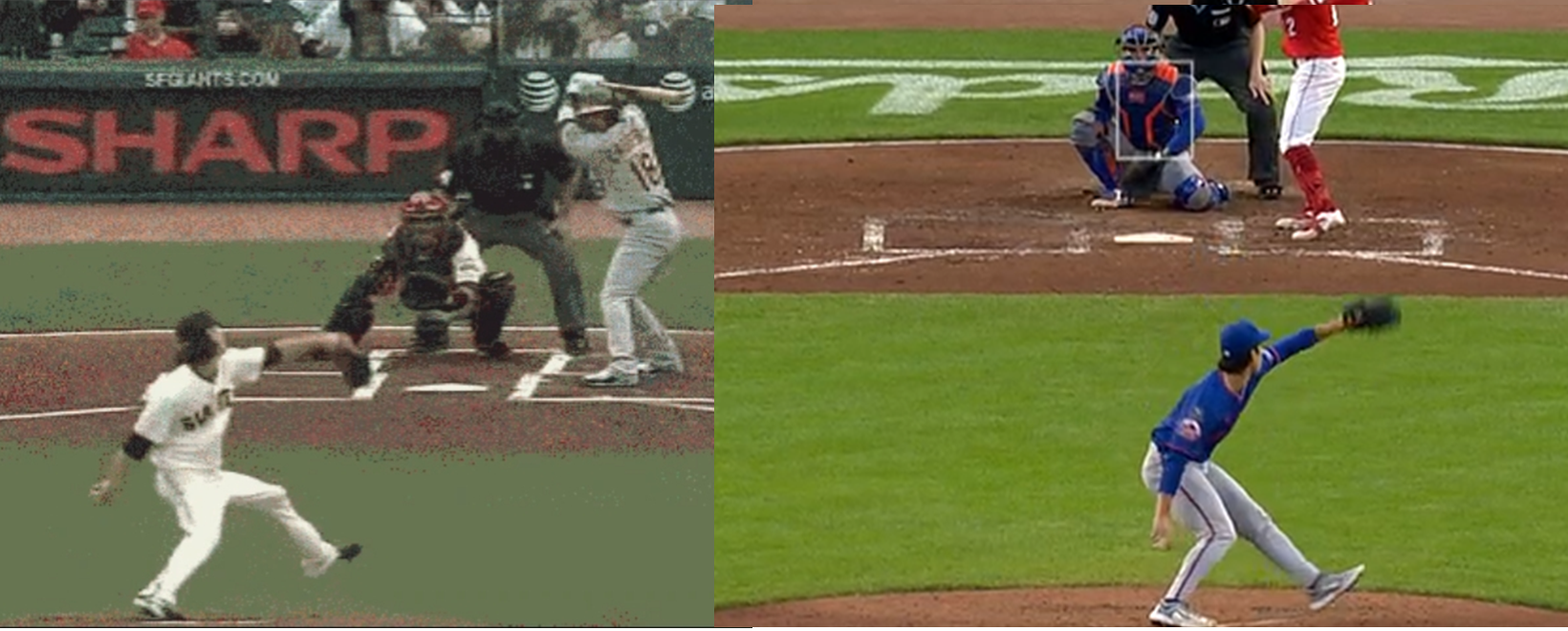 < 팀 린스컴(왼쪽)과 조나 통(오른쪽)의 투구 모습 >