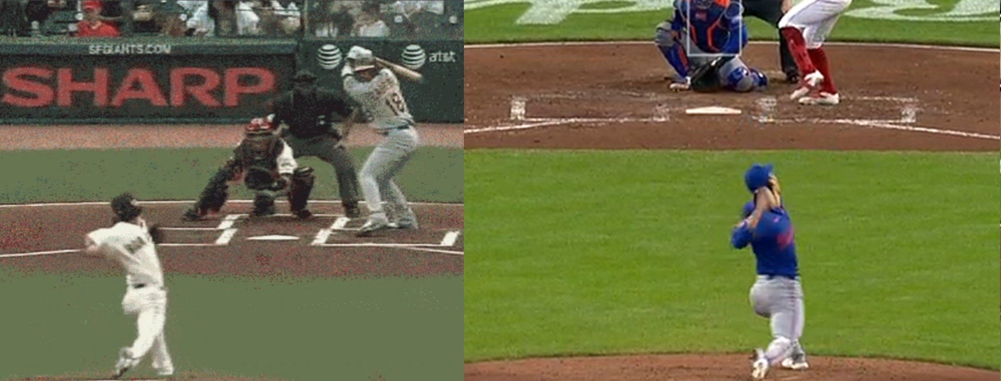 조나 통과 린스컴 모두 착지할 때 왼발이 오른발보다 3루 쪽으로 치우쳐 있다. 두 선수 모두 크로스 스탠스를 활용하고 있는 셈이다.
