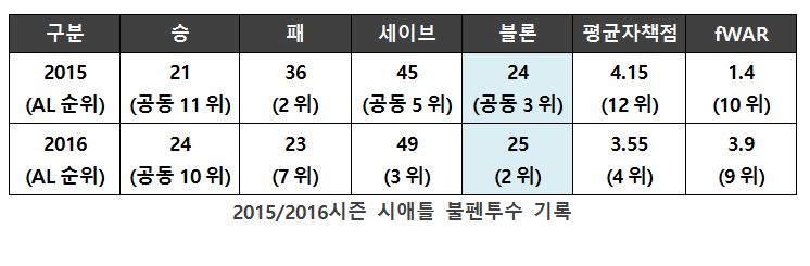 이에 부족함을 느껴서일까. 시애틀은 2016시즌 후 스토브 리그가 열리자마자 또다시 바쁘게 움직였다. 아쉬움을 남겼던 포수와 1루수를 비롯해 여러 포지션에서 선수 이적과 영입 소식이 들려왔다.
