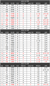 둘째, 고액 연봉자를 적은 보상으로 데려오게 될 수도 있고, 반대로 저액 연봉자를 높은 보상으로 데려오게 될 수 있다. 팀에 따라 연봉이 적은 선수가 A등급을 받기도 하고 반대로 연봉이 많은 선수가 B등급을 받기도 하기 때문이다. 가령 삼성 최형우는 연봉이 7억임에도 B등급이고 kt 이진영은 6억이지만 A등급이다. 이에 따라 고액 연봉자가 많은 팀에 있는 선수는 상대적으로 이적이 쉬워질 가능성이 크고 고액 연봉자가 적은 팀에 있는 선수는 이적이 어려워질 수도 있다.