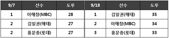 9월 20일. 김일권은 또 도루를 기록하지 못했다. 상대였던 이해창은 김일권 앞에서 보란 듯이 2도루를 추가하며 다시 선두로 등극했다. 홍문종은 팀도 패배하며 우승 확정을 미룬 데다가 본인 역시 도루를 추가하지 못했다. 김일권 35도루, 이해창 36도루, 홍문종 33도루.