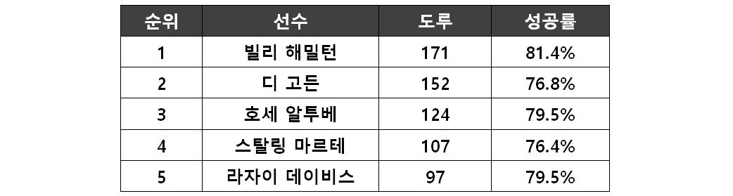 통산 도루 3위와 같은 이름을 가진 빌리 해밀턴(신시내티 레즈)은 최근 3시즌 동안 메이저리그에서 가장 많은 도루를 기록한 선수다. 2014년 풀타임 첫 시즌 56도루를 기록한 그는 3시즌 연속 50개 이상의 도루(56개-57개-58개)를 기록했으며 매년 성공률도 높아지고 있다(70.9%→87.7%→87.9%). 그는 리그에서 손꼽히는 스피드를 자랑하지만 아직까지 한 번도 도루 타이틀을 가져간 적이 없다(3년 연속 NL 도루 2위). 2016시즌 풀타임 첫 3할대 출루율(.321)를 기록하며 이전보다 나은 출루능력을 보여줬기 때문에 올 시즌 더 큰 기대를 모으고 있다.