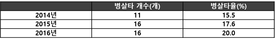 <표 1: 윤석민의 2014~2016시즌 병살타 개수와 병살타율>