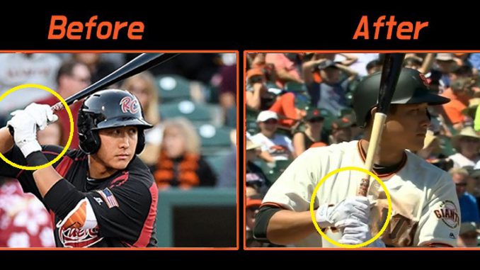 6월 이전과 비교했을 때, 황재균의 타격 자세에서 가장 크게 달라진 점은 바로 배트를 쥔 손의 위치이다. 5월까지만 해도 황재균은 배트를 쥔 손을 높이 들어서 팔꿈치를 몸통과 가장 멀리 떨어진 지점에 위치시키는 타격폼을 지니고 있었다. 하지만 6월의 황재균에게서 관찰할 수 있는 모습은 이와는 사뭇 다르다. 배트를 쥔 손의 위치가 낮아졌기 때문이다. 이로 인해 자연스럽게 팔꿈치가 몸통에 붙은 상태로 스윙이 이루어지고 있다.