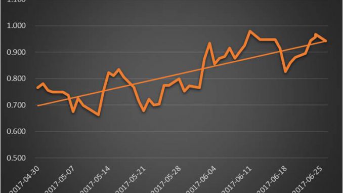 ▲ 황재균의 날짜별 최근 20경기 OPS 변화