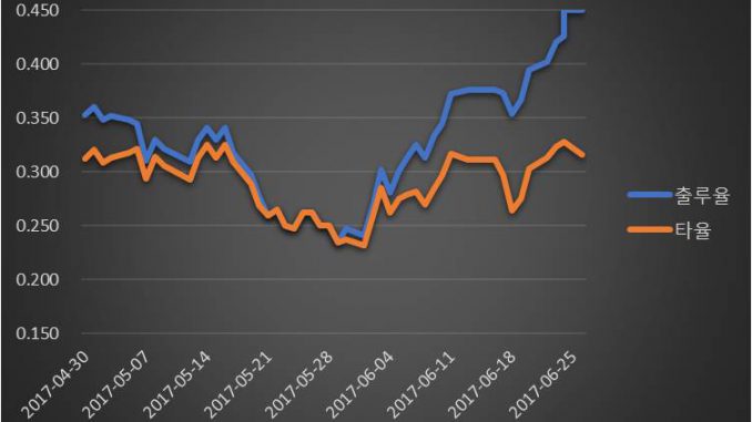 ▲ 황재균의 날짜별 타율 및 출루율 변화