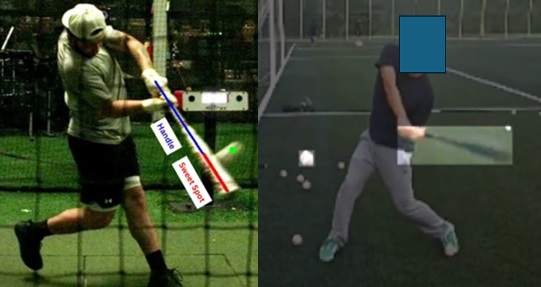 <드라이브라인 측에서 공개한 데이터셋(좌)와 필자가 직접 라벨링한 사회인야구 선수의 데이터셋. 좌측 사진의 선수가 더 빠른 속도로 배트를 휘두르고 있음에도 오른쪽 사진보다 배트의 잔상이 더 적다.>