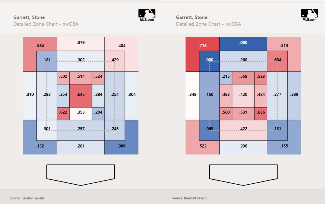 < 존 별 xwOBA (좌측: 2022년 AAA / 우측: 2023년 MLB) >
