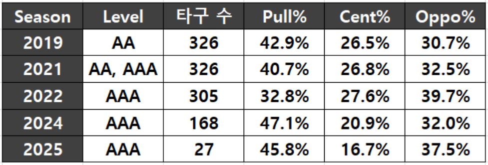 < 2019 ~ 2025시즌 마이너 리그 타구 지표 >