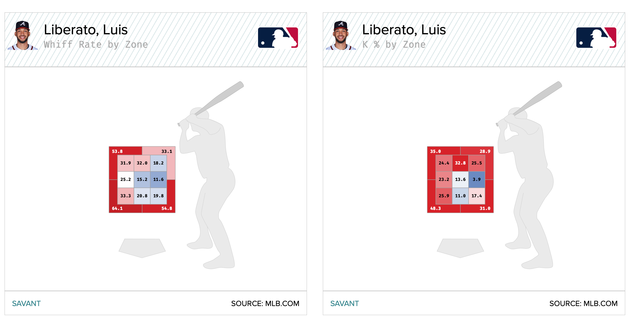 리베라토는 상단 존에 약점을 가지고 있다. KBO 리그는 ABS를 활용하고 있다. ABS는 상단 존이 비교적 투수에게 유리하다. 이 때문에 더 많은 스트라이크를 허용할 수 있다. 자연스레 헛스윙도 늘 수 있다. 리베라토는 자신만의 존을 가지고 있지만 그 존이 다소 작다. 상대 투수에게 공략당할 여지가 있다. ABS 적응도 관건 중 하나일 것으로 보인다.