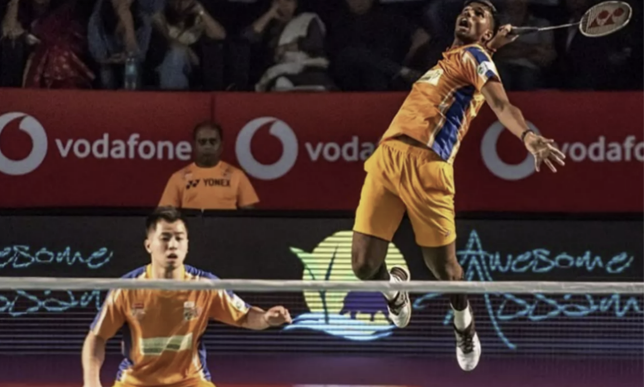 < 배드민턴 복식 종목으로 출전한 랑키레디 사이라즈가 점프 스매시를 시도하는 모습. 2025년 그는 스피드건 상 565km/h의 스매시를 날리며 기네스북에 자신의 이름을 남겼다. >