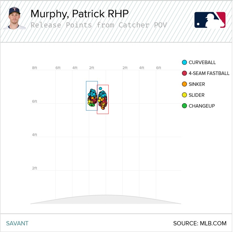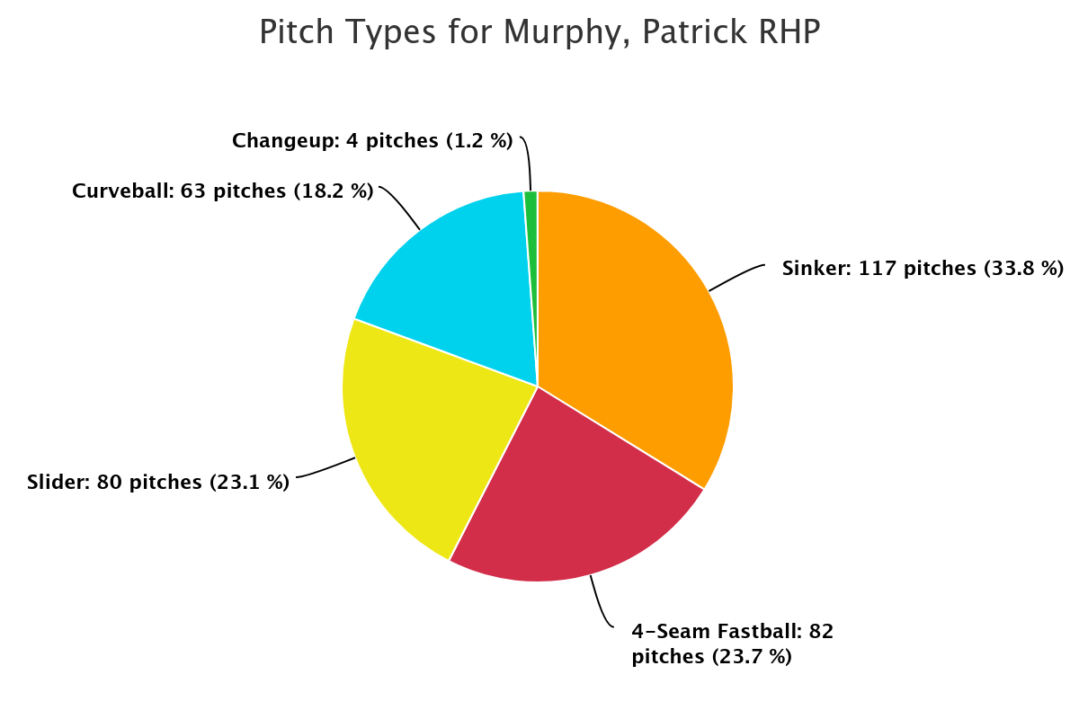 체인지업은 유망주 때부터 평균 이하라는 평을 받았고 올해 구사율도 1.2%에 그쳤던 만큼 없는 구종이라 보는 것이 합리적이다. 좋은 오프스피드 피치를 던지지 못한 만큼 좌타자와의 승부에서도 어려움을 겪었다. 실제로 올해 머피의 좌우 스플릿 성적은 꽤나 큰 차이가 난다.