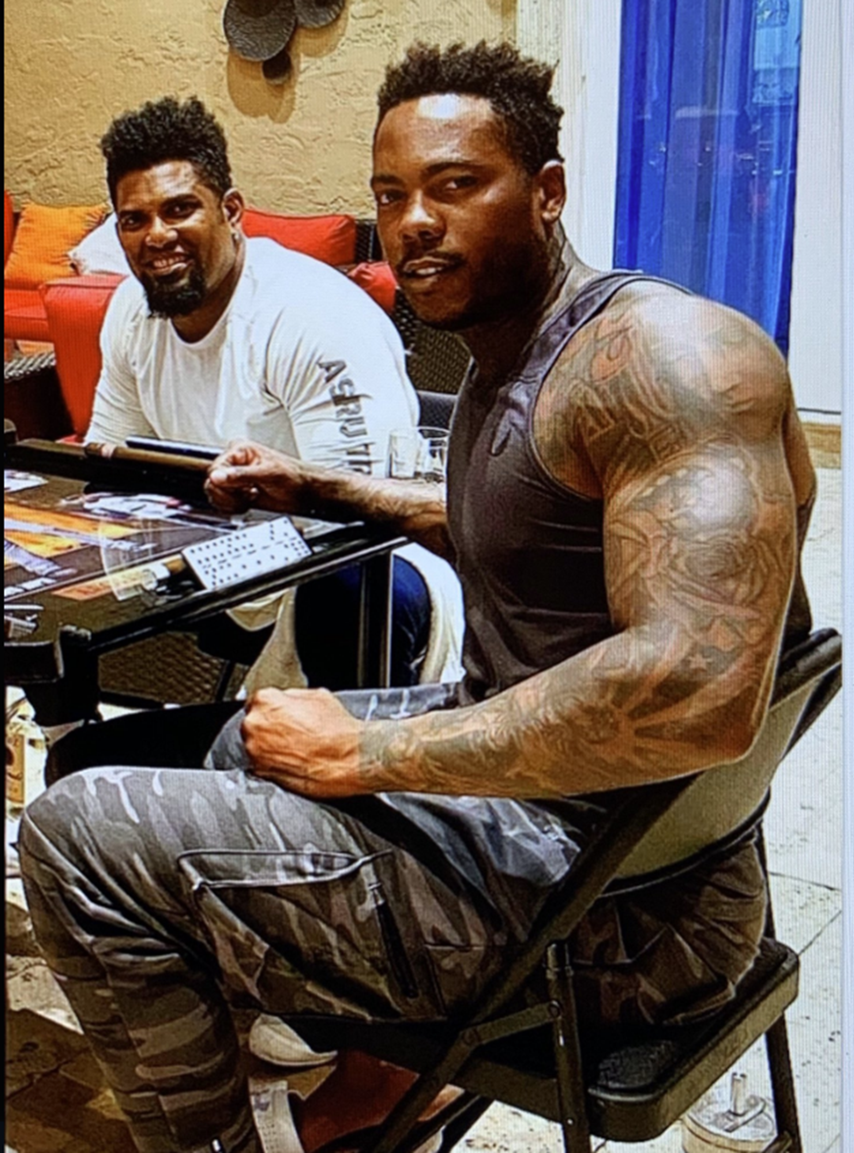 < SNS에 업로드되고 큰 화제가 된 바 있는 아롤디스 채프먼의 사진. 보디빌더를 연상케 하는 팔 근육이 금강불괴에 가까운 내구성에 기여했다. >