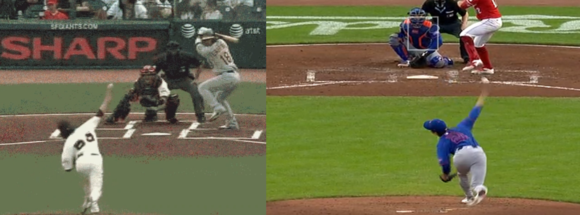 < 팀 린스컴(왼쪽)과 조나 통(오른쪽)의 투구 모습 >