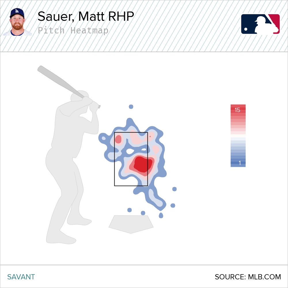올해 빅리그와 마이너리그를 통틀어 가장 구사율이 높았던 커터도 나쁘지 않다. 사우어는 다저스와 계약을 맺으며 커터를 연마했다고 한다. 결과는 대성공이었다. 리그 평균보다 높은 횡 무브먼트를 극대화하기 위해 우타자 바깥쪽에 커터를 집중적으로 던졌다. 기대 타율 0.222, 기대 장타율은 0.396을 기록했다.