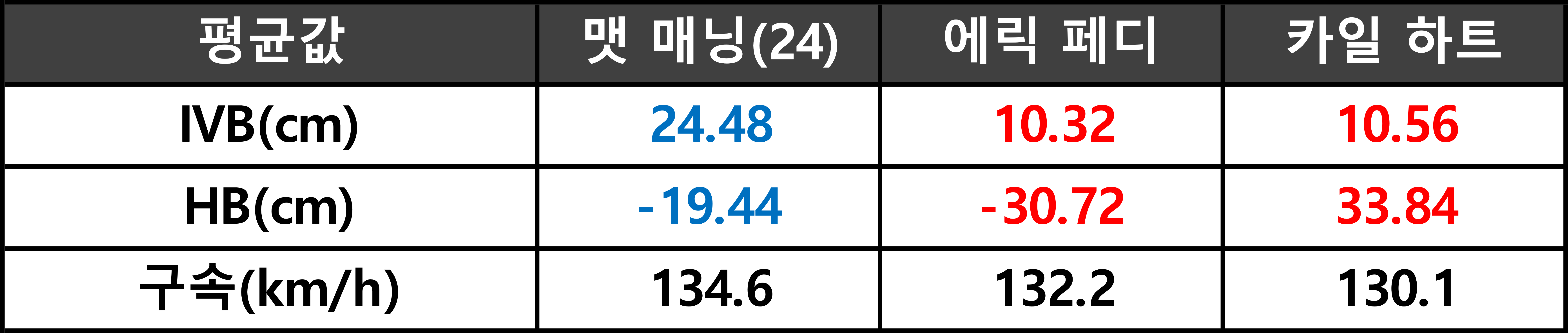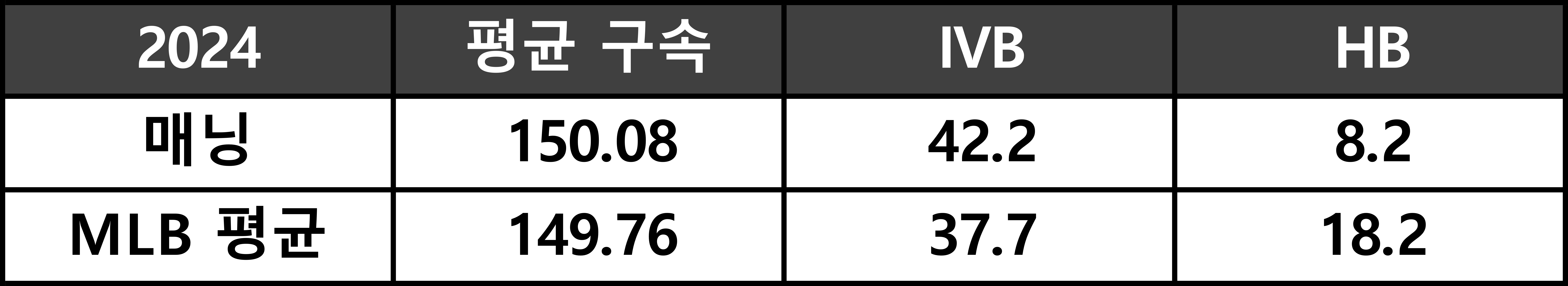 < 2024시즌 맷 매닝 포심 스펙 (단위 : km/h, cm) >