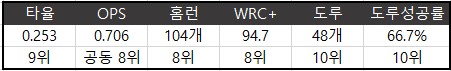 < 2025시즌 KT 위즈 팀 타격 지표 >