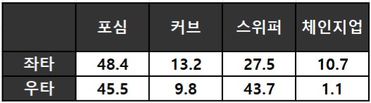 < 와이스 좌/우 타석별 구종 구사율(%) >