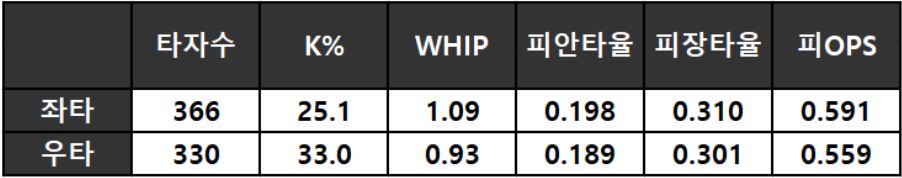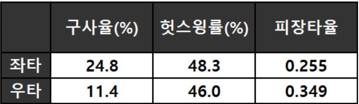 < 와이스 좌/우 타석별 상대 성적 >