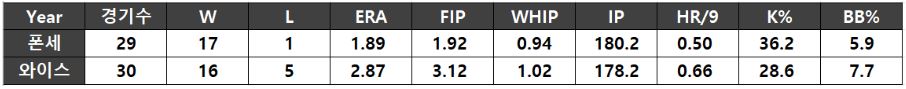 < 폰세, 와이스 시즌 주요 성적 >