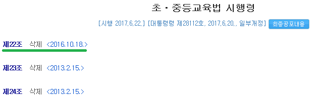 《 학교장이 주장하는 초·중등교육법 시행령 제22조가 현재 폐기된 상황 》