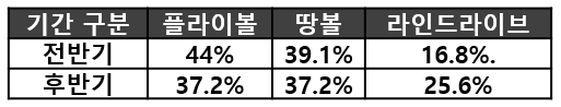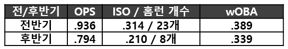 그림1. 테임즈의 전/후반기 속구 상대 피안타율 (포수시점/*출처: fangraphs)