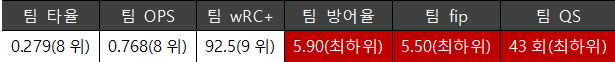 실제로 삼성이 올해 기록한 각종 지표는 참담했다. 왜 이 팀이 창단 이후에 최악의 성적을 거뒀고 시즌 도중, 최다패 기록을 경신하는 것이 아니냐는 걱정을 할 정도였는지 아주 여실히 그리고 낱낱이 보여주고 있다.