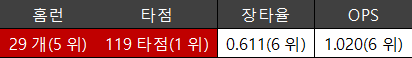 0.280/0.347/0.517 OPS 0.854 24홈런 87타점 132안타 65득점 wRC+ 111