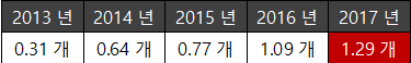 <선발전환 후 우규민의 연도별 9이닝당 피홈런 개수>