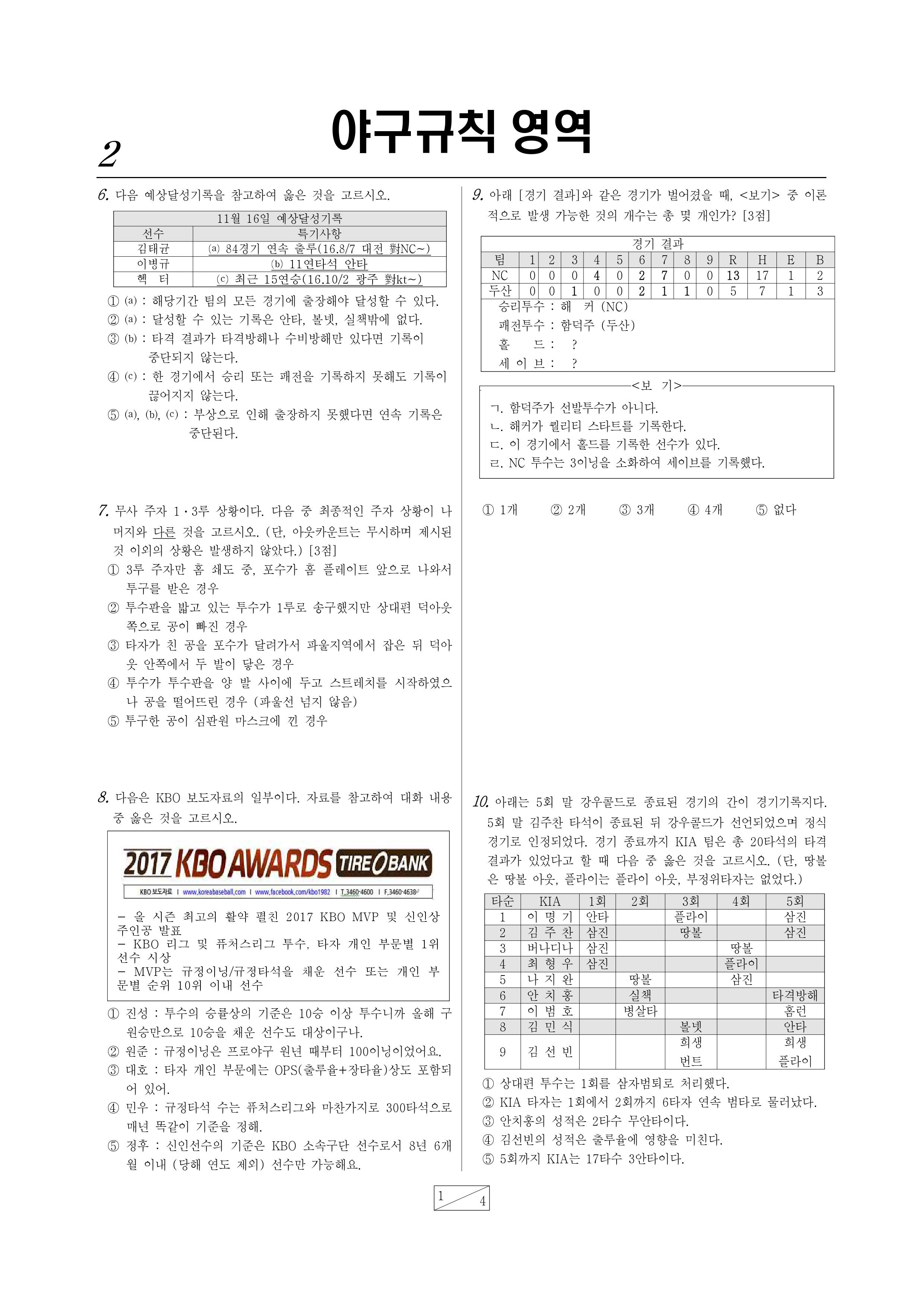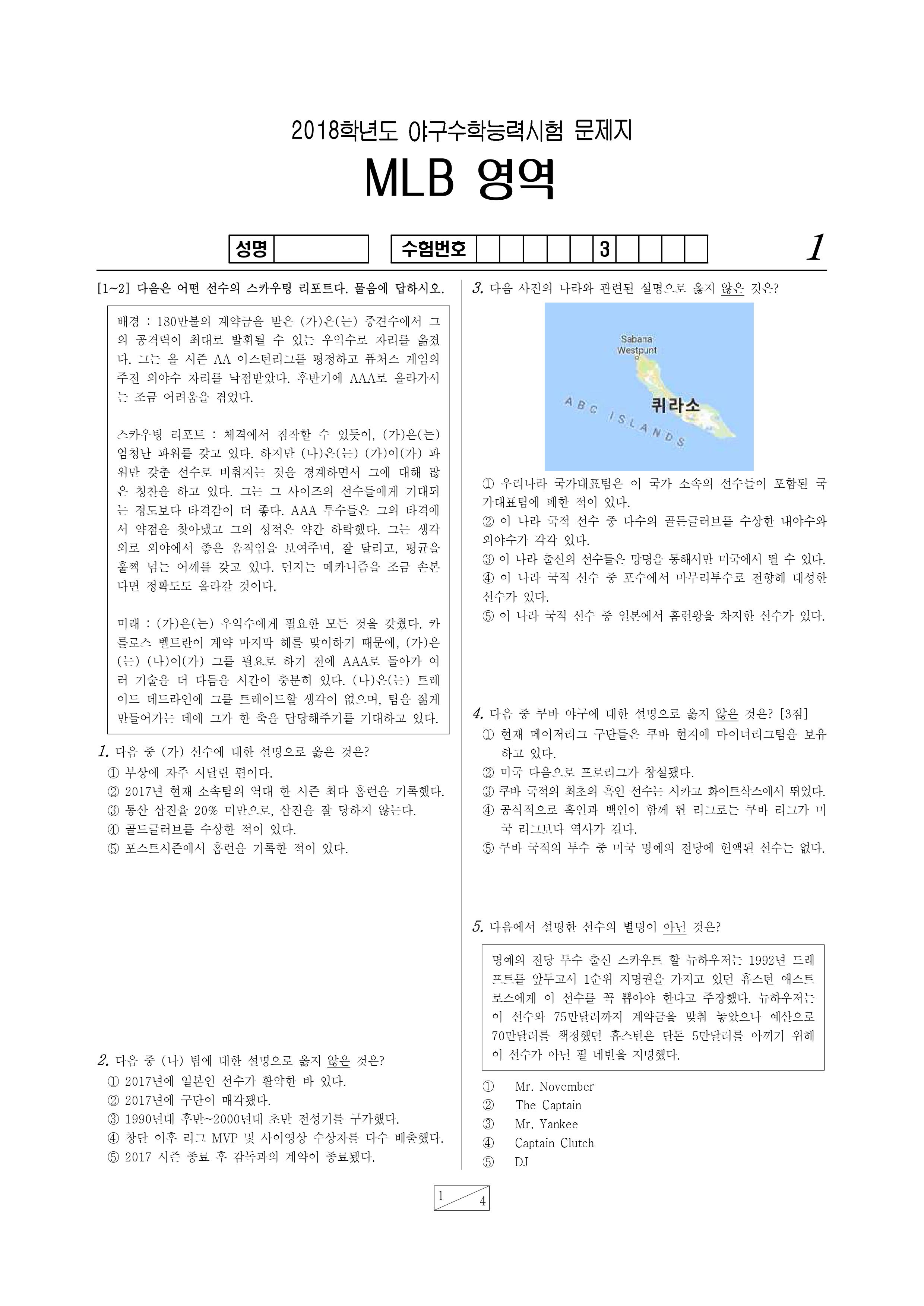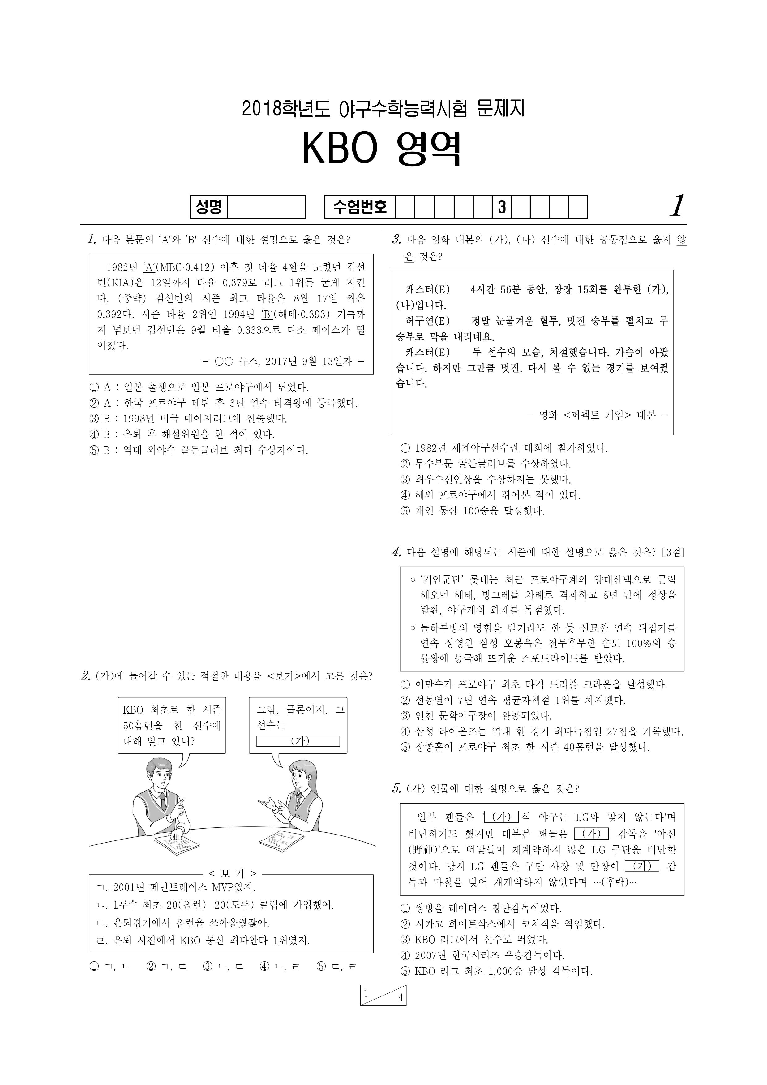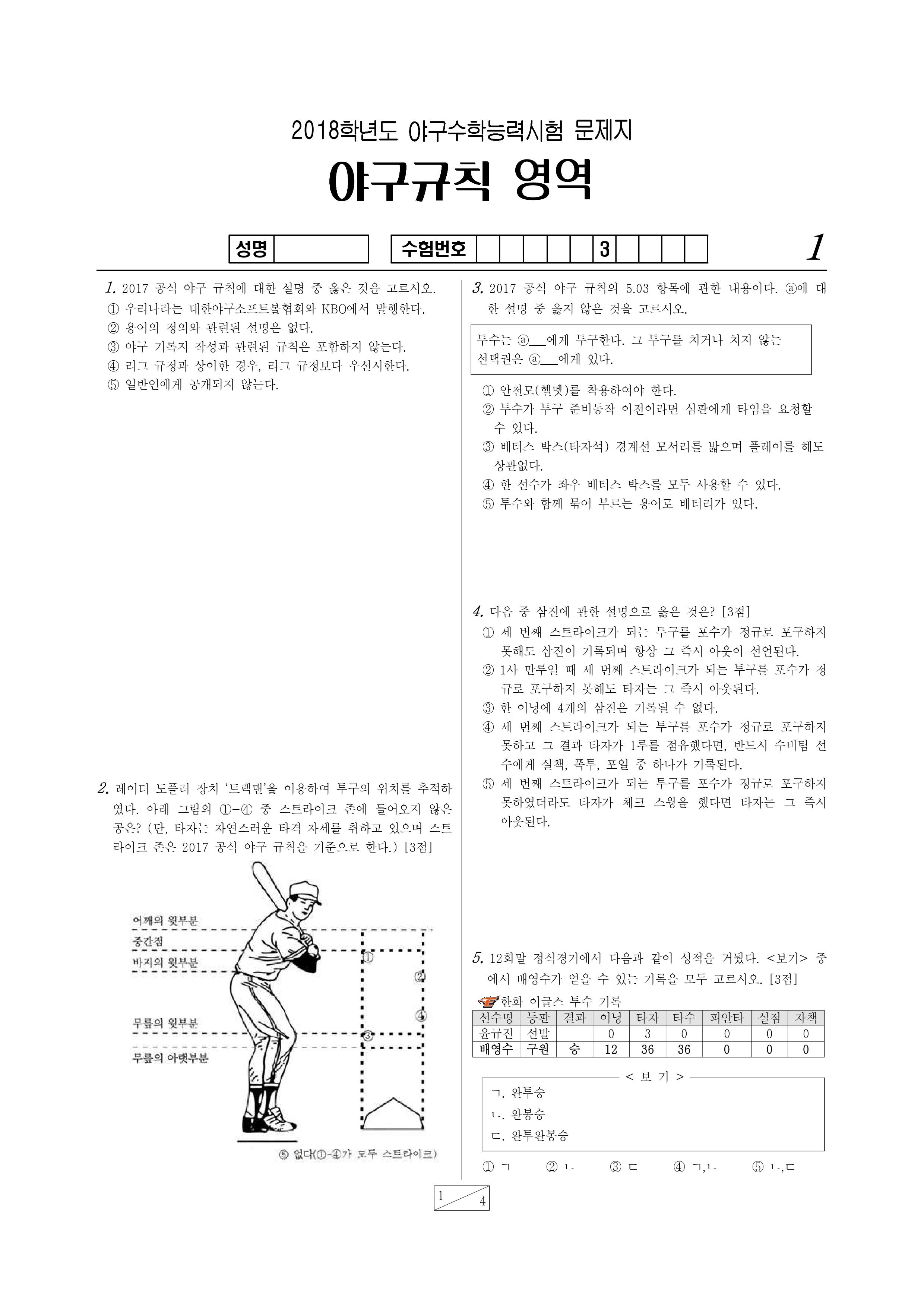 야구공작소 2018학년도 야구수학능력시험 답안작성 링크