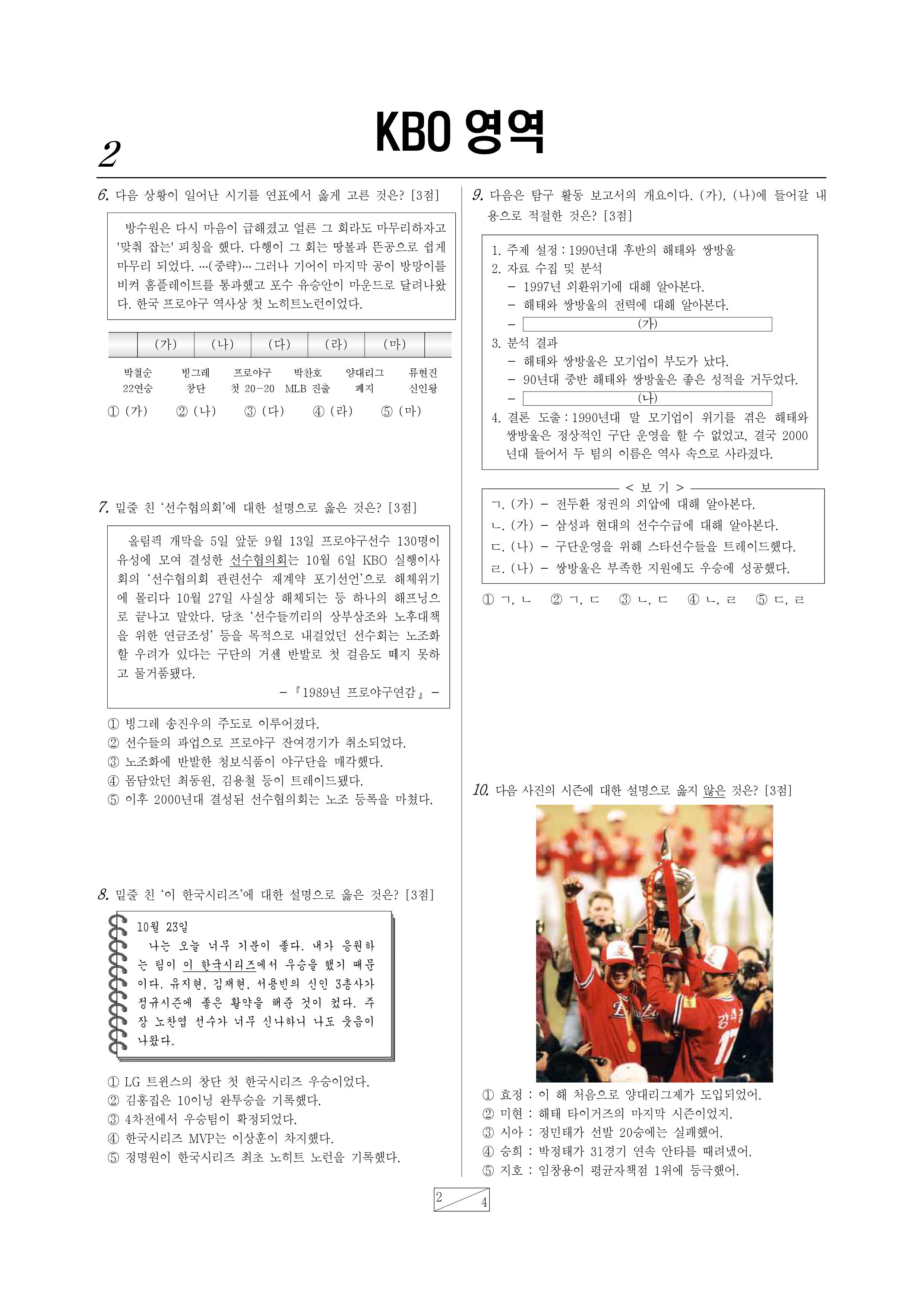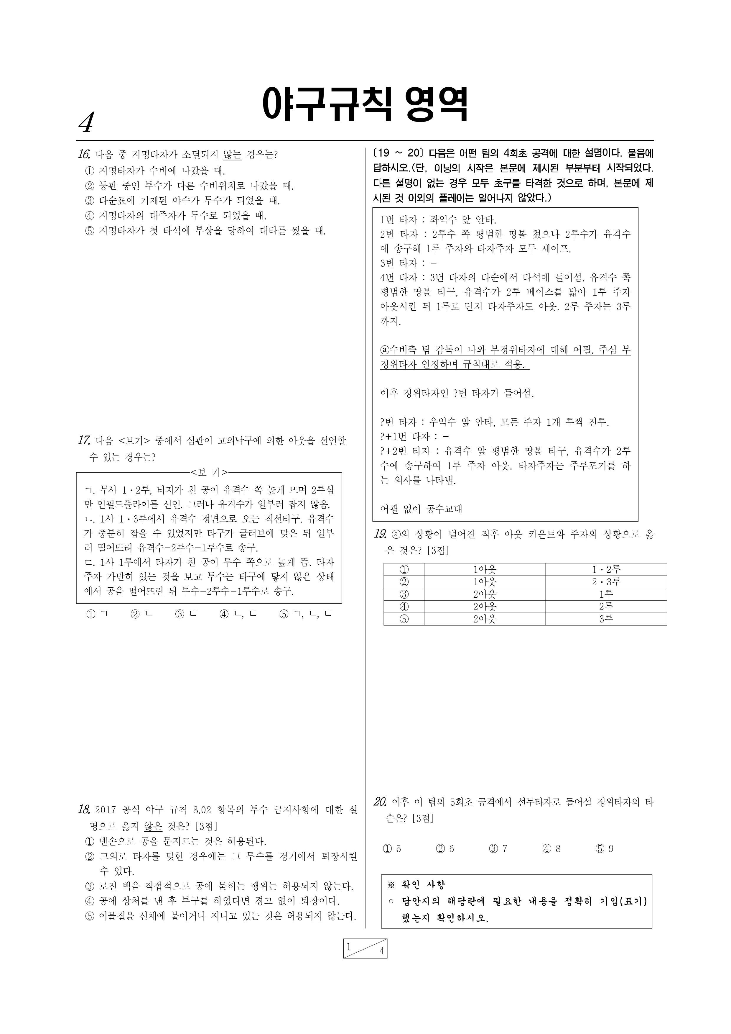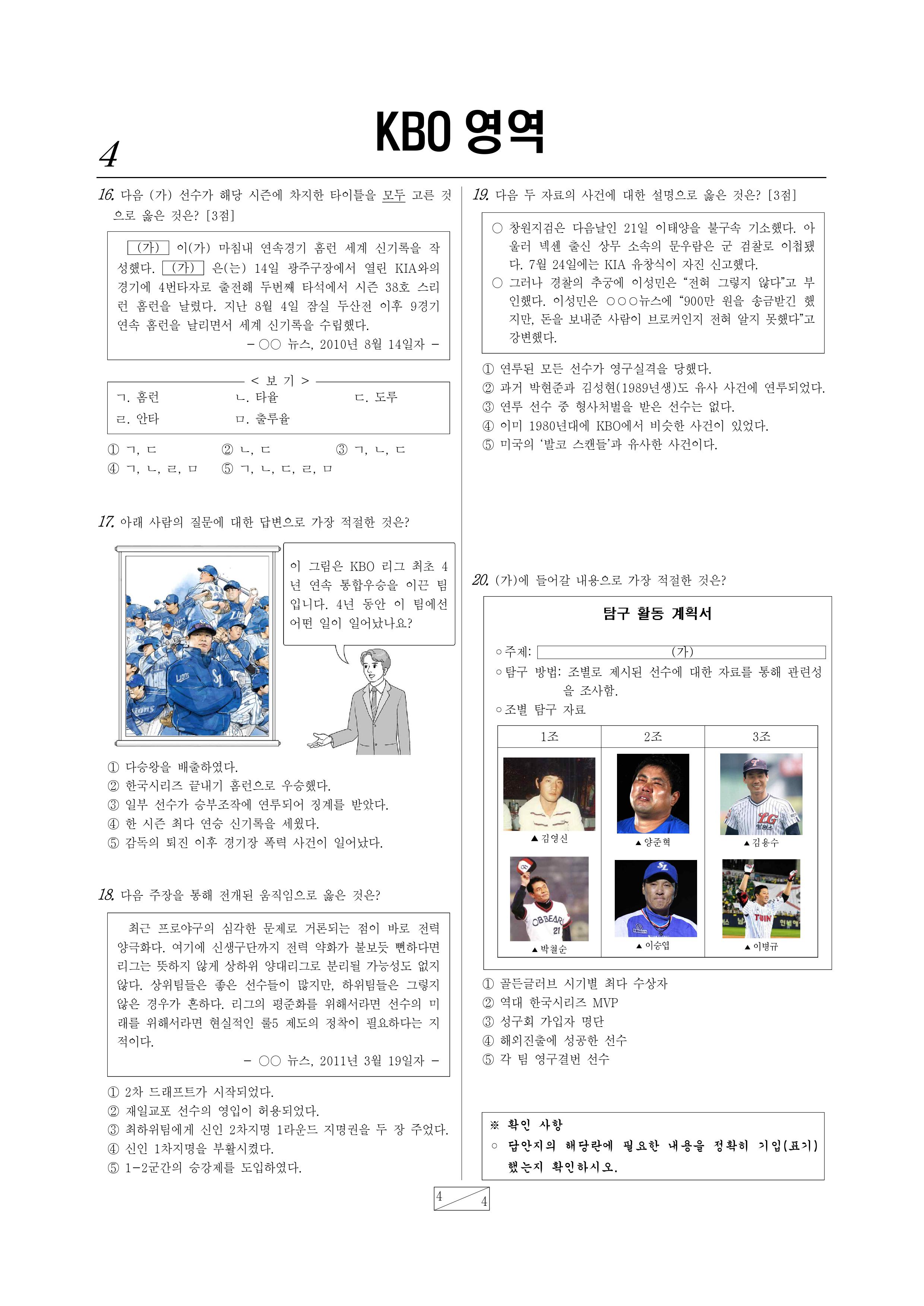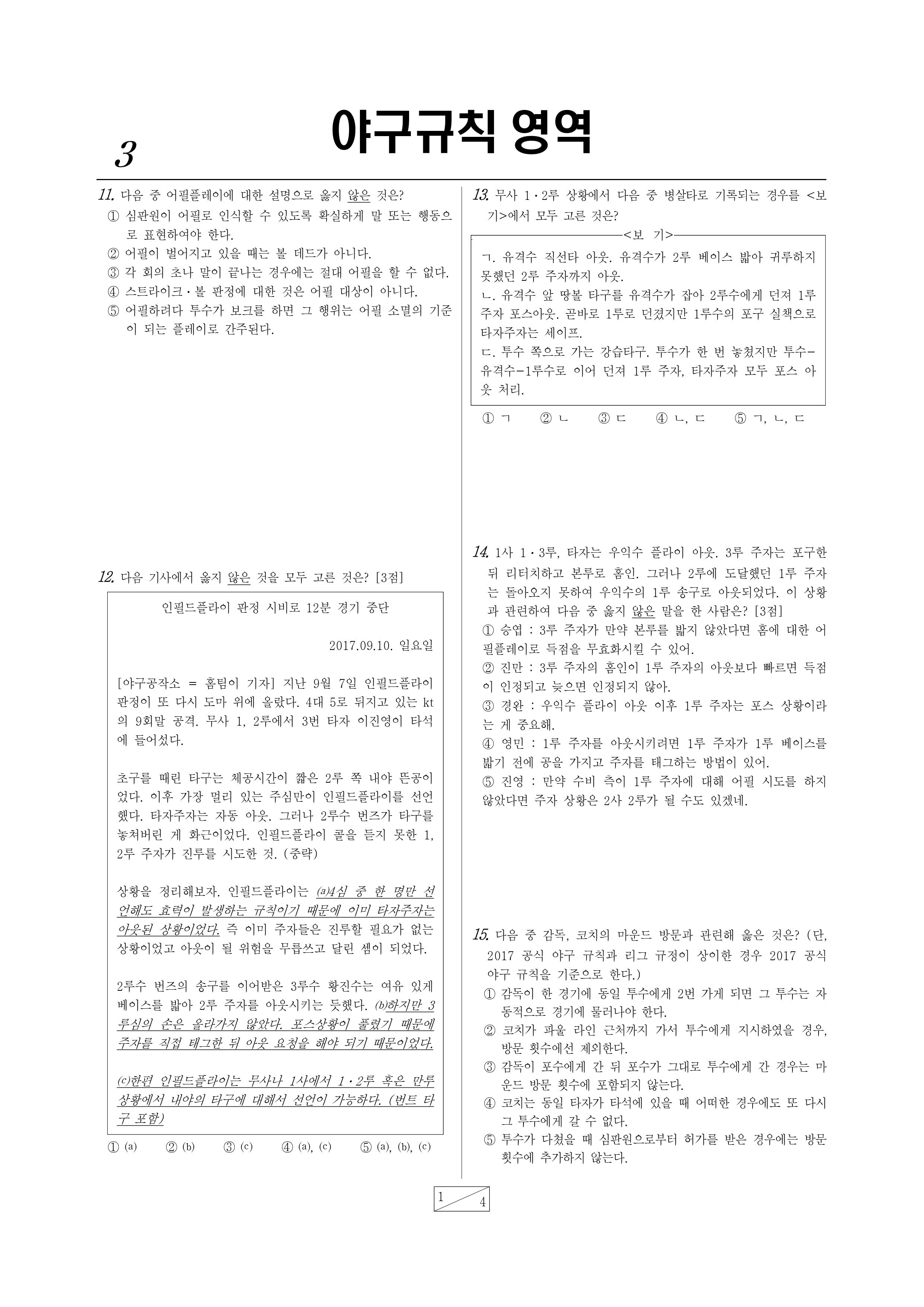 야구공작소 2018학년도 야구수학능력시험 답안작성 링크