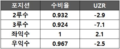 뚜렷한 수비 위치가 없다는 것 역시 문제가 될 수 있다. 유망주 때부터 풋워크를 지적 받아왔으며 결국 중앙 내야수로는 부적격이라는 판정을 받았다. 실제로 그의 메이저리그 수비 성적은 처참하다. 그나마 괜찮은 수비를 보여줬던 곳이 좌익수이지만 해당 포지션 역시 신통치 않은 편이다. 우리나라에서도 메이저리그에서의 수비가 이어진다면 자칫하다 그를 지명타자로 고정시켜버려야 할지도 모른다.
