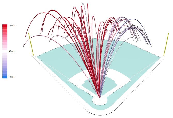 홈런더비에서 저지가 날린 홈런 타구 (출처: 베이스볼 서번트)