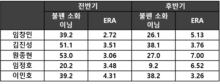 <2017 시즌 NC 필승조의 전, 후반기 성적>