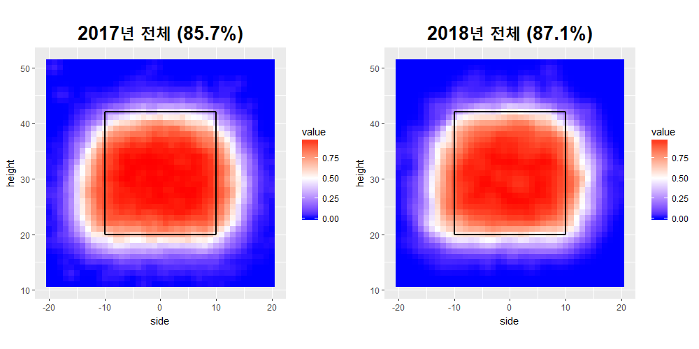 [2017시즌과 2018시즌의 스트라이크 존 비교]