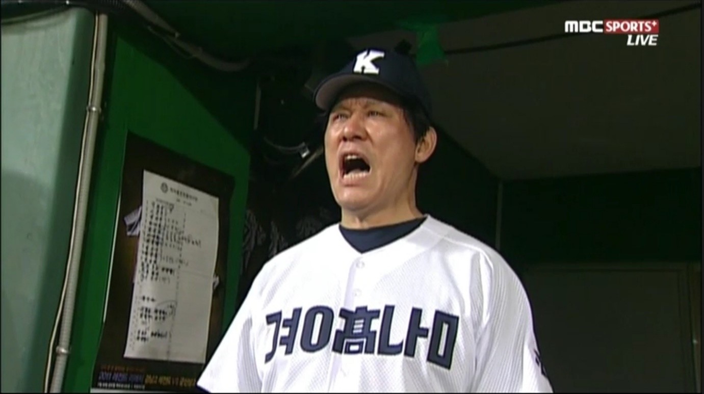 2011년 벌어졌던 ‘레전드 리매치’ 당시 경남고 감독이었던 허구연 (사진=중계화면 캡쳐)