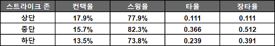 <표4> 2017년 엄상백 스트라이크 존 별 패스트볼 결과