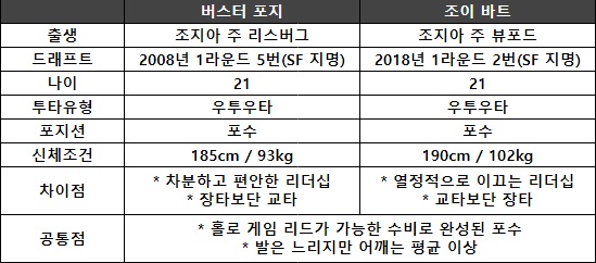 [표 1] 포지와 바트의 드래프트 당시 비교