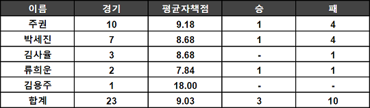 3~6월 불펜 평균자책점 4.92 리그 3위