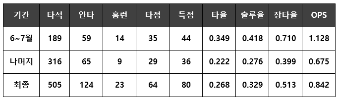 번즈의 6~7월, 그리고 나머지 기간의 성적