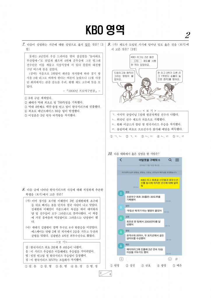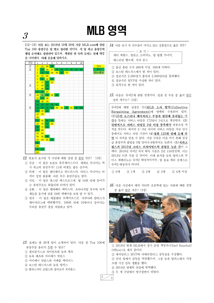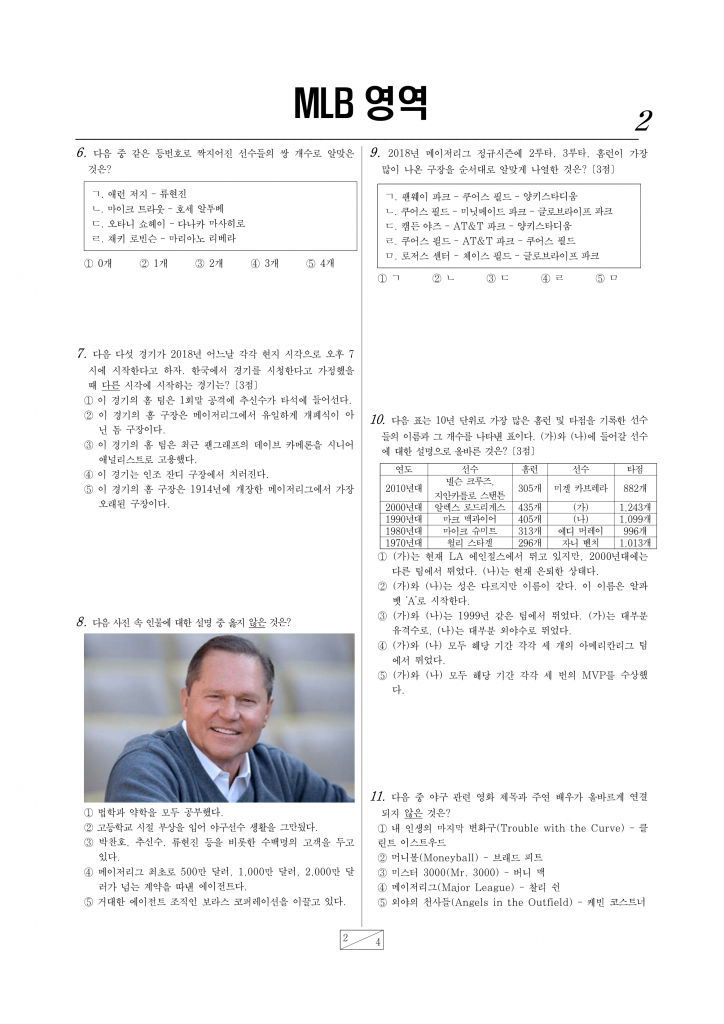 * MLB 영역 7번 문항 5번 선지 ‘가장’ -> ‘두 번째로’ 로 정정