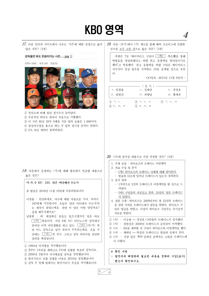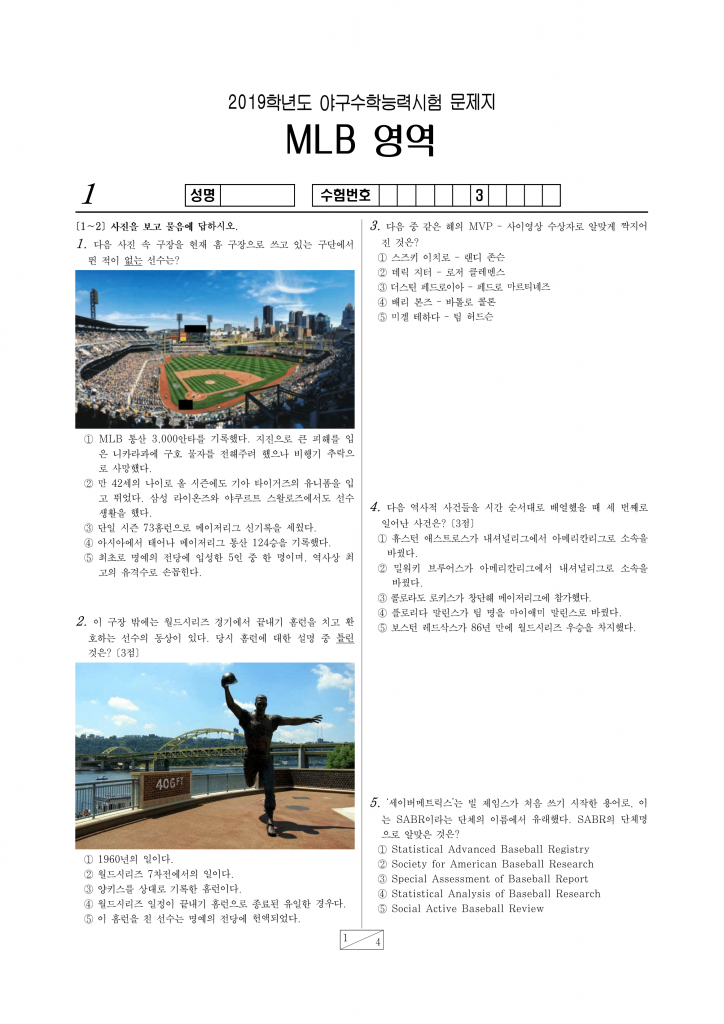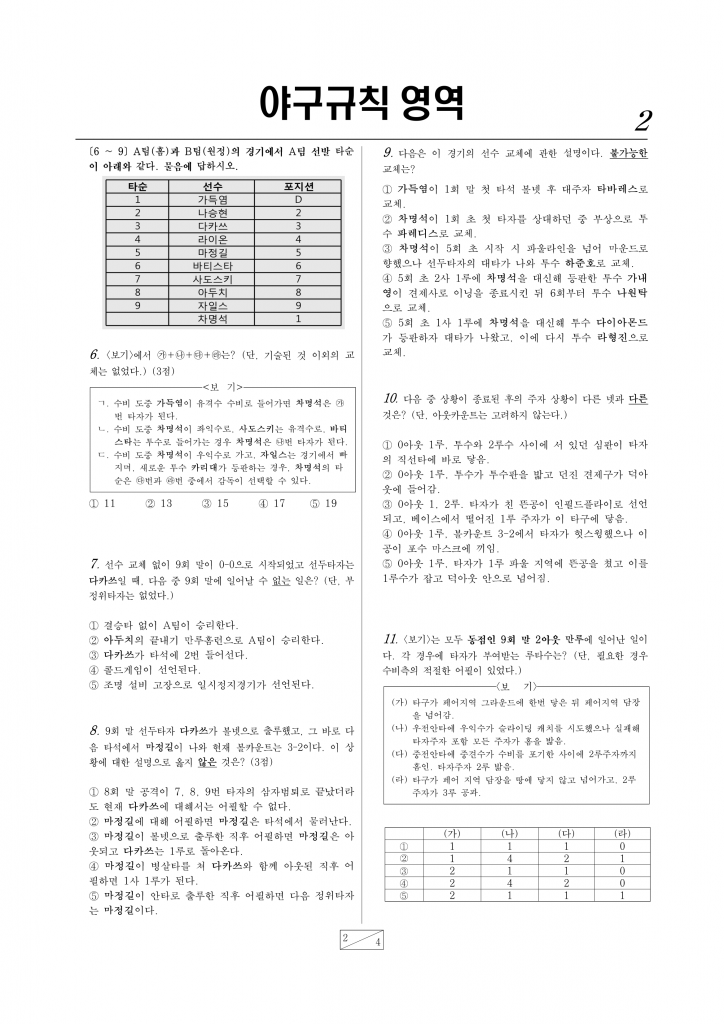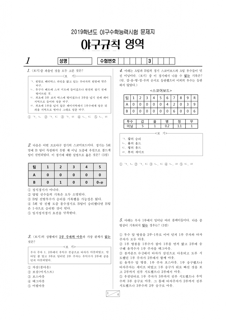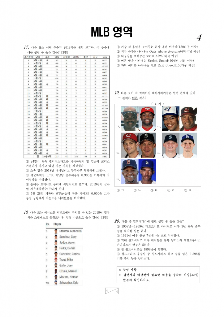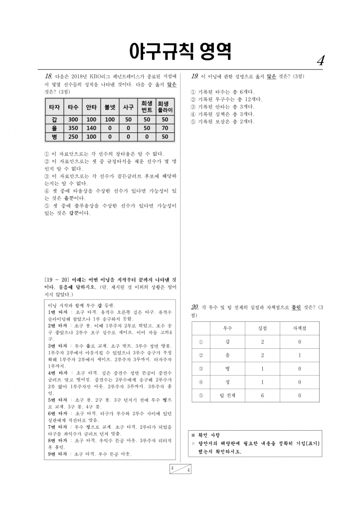 안녕하세요, 야구공작소입니다. 아래 링크를 통해 정답 및 해설을 확인하시고 문제가 있을 경우 페이스북 메시지 혹은 yagongso0@gmail.com으로 메일 부탁드립니다. 감사합니다.