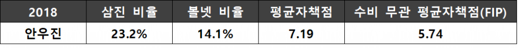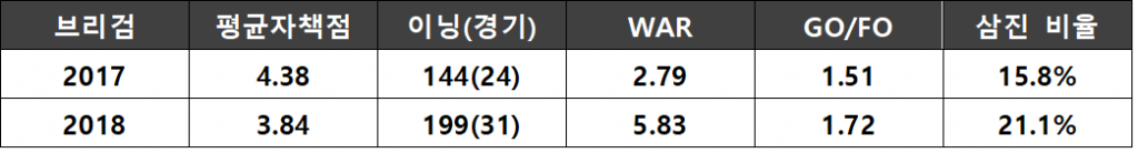 (GO/FO은 Ground Out/Fly Out, 즉 땅볼아웃과 뜬공아웃의 비율을 나타낸다. 이 수치가 높을수록 뜬공에 비해 땅볼을 많이 유도했다고 해석할 수 있다.)