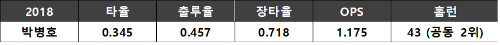 마찬가지로 2년차에 더 강해진 이정후도, 국가대표 팀의 우완 에이스를 도맡은 최원태도 팀 내 MVP 자격이 있다. 그러나 돌아온 4번 타자 박병호를 MVP로 꼽지 않을 수 있을까? 작년 유격수 김하성이 4번을 맡을 정도로 아쉬웠던 우타 거포의 부재는 박병호의 복귀로 단숨에 해결되었다. 그는 불의의 부상으로 113경기 488타석만을 소화하는 데 그쳤는데, 이렇게 ‘한정된 기회’는 거꾸로 박병호의 무서움을 방증했다. 그가 기록한 장타율 0.718은 올해 1위이자 역대 6위에 해당한다. 그가 홈런을 때려내는 데는 평균 11.3타석만이 필요했는데, 이는 올해 1위이자 역대 5위의 기록이다. 플레이오프 5차전 9회 말 투아웃에 나온 극적인 동점 홈런은 “졌지만 잘 싸웠다”라는 말이 아깝지 않을 정도로 진한 여운을 남겼다.