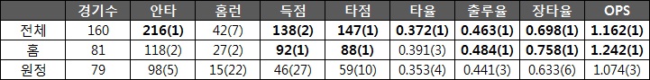 *괄호는 규정 타석을 채운 NL 타자 중 순위, 원정은 250타석 이상
